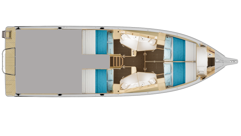 Dù là chuyến đi của cặp đôi, gia đình hay nhóm bạn, mẫu thuyền này đều linh hoạt đáp ứng mọi nhu cầu, cho phép mỗi thành viên tận hưởng theo cách của riêng mình. Trẻ nhỏ thỏa sức vui đùa an toàn trên boong trước, trong khi người lớn thư thả phía đuôi thuyền. Du ngoạn, thư giãn, nấu nướng, trò chuyện, …tất cả đều diễn ra một cách thảnh thơi trọn vẹn.