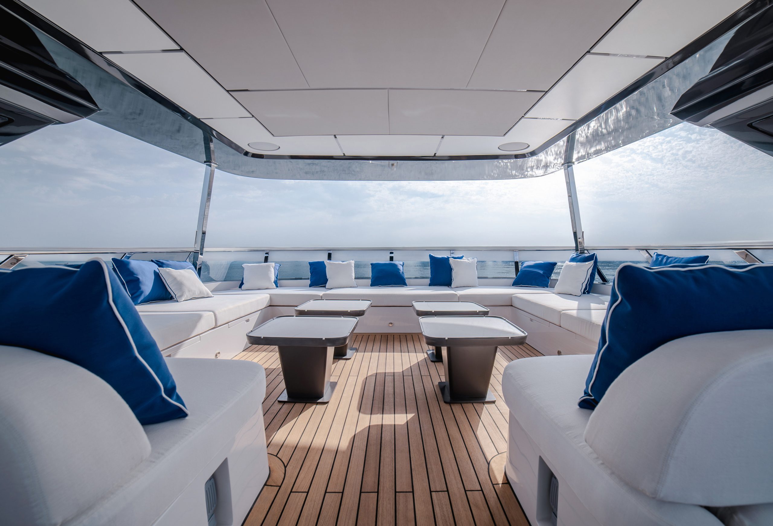 Sinh ra để dành cho những trải nghiệm giải trí đẳng cấp, Majesty 112 sở hữu không gian cho 12 thượng khách và 6 thuyền viên. Các boong mở rộng thênh thang kiến tạo nên bối cảnh hoàn hảo cho những buổi tiệc ngoài trời đẳng cấp nhất. Bên trong, salon chính với hệ cửa kính panorama đón trọn ánh sáng tự nhiên, kết hợp cùng vật liệu nội thất được tuyển chọn kỹ càng và phong cách bài trí vượt thời gian, tạo nên cảm giác vừa bề thế, sang trọng nhưng vẫn đầy ấm cúng.