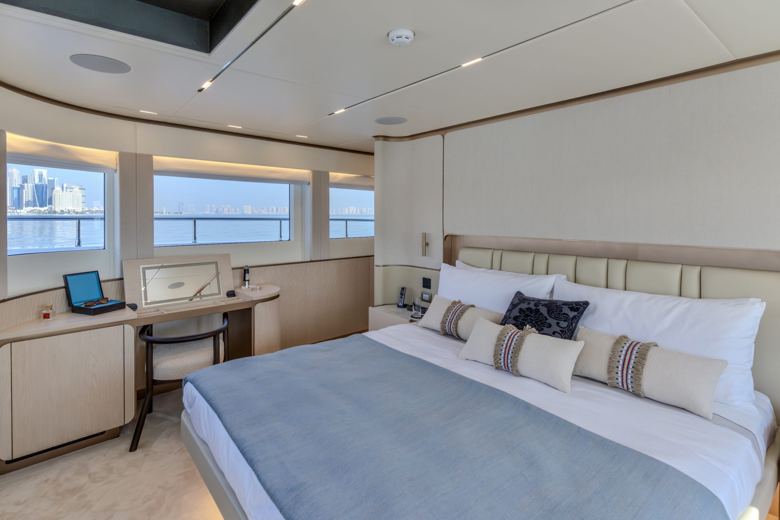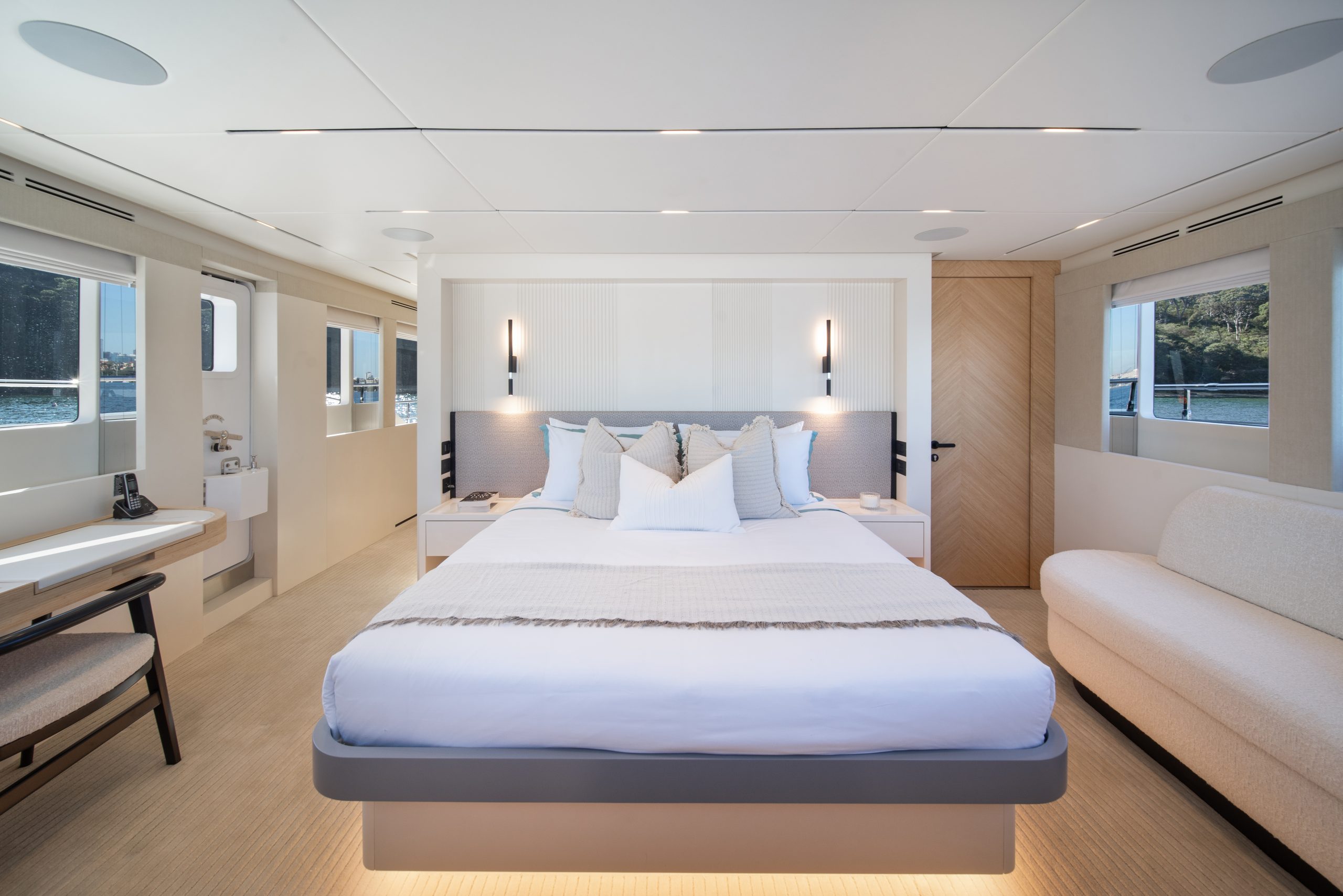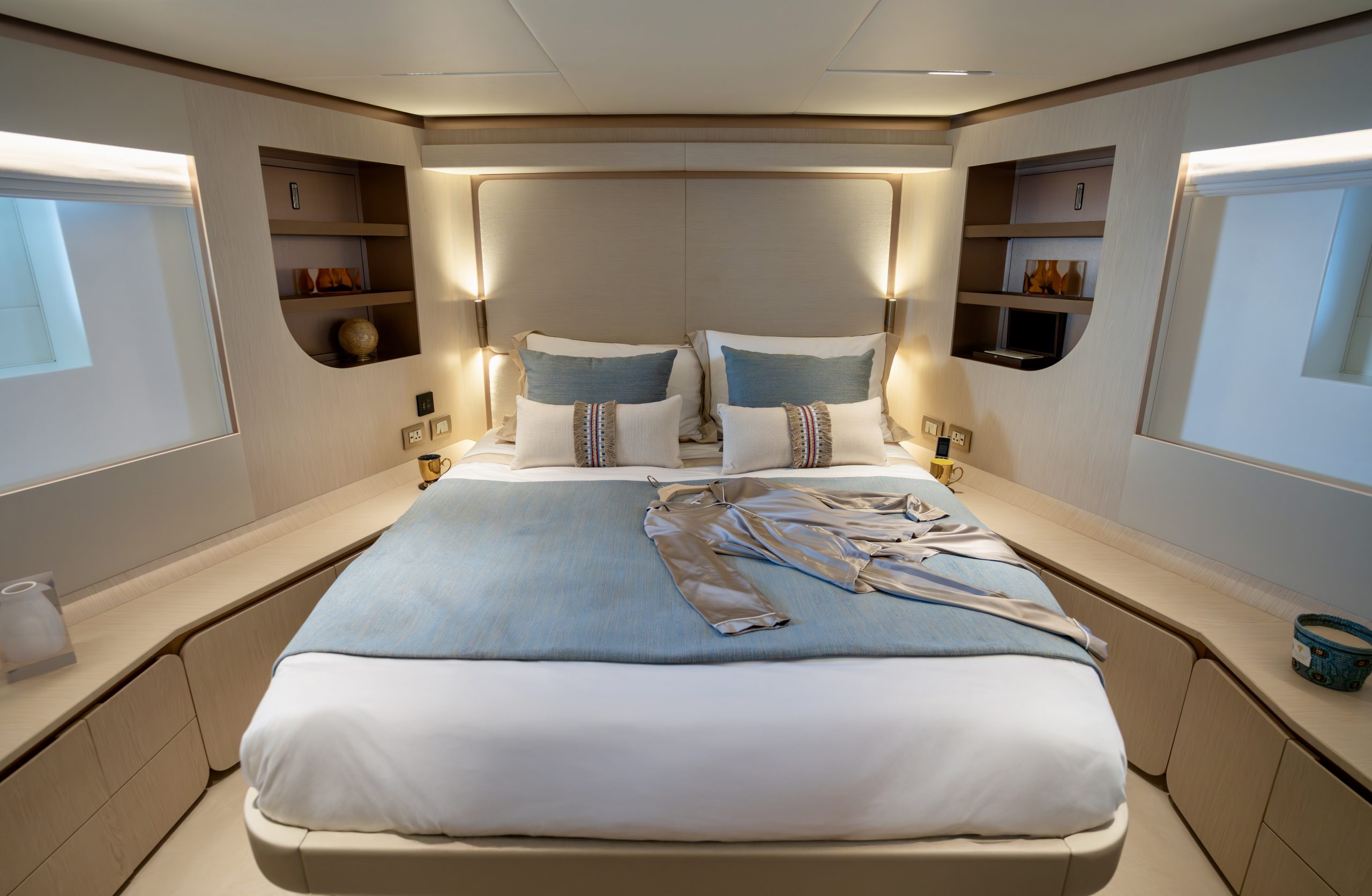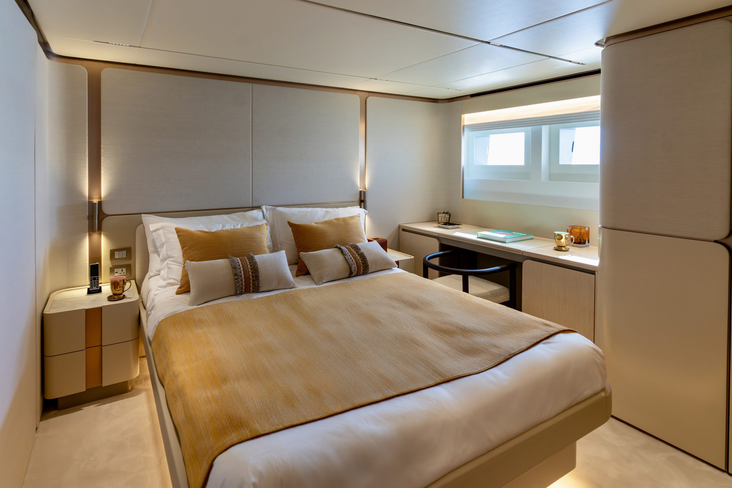 Không gian nghỉ ngơi được thiết kế xa hoa cho 10 thượng khách trong 5 phòng ngủ tiện nghi, mang lại sự riêng tư tuyệt đối cùng không gian rộng rãi đến kinh ngạc – điều hiếm thấy ở các du thuyền cùng phân khúc.