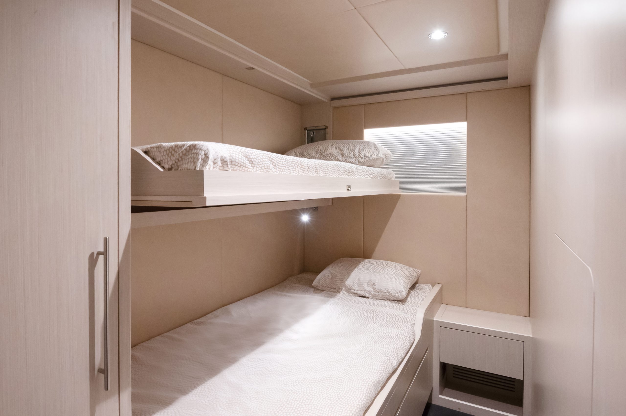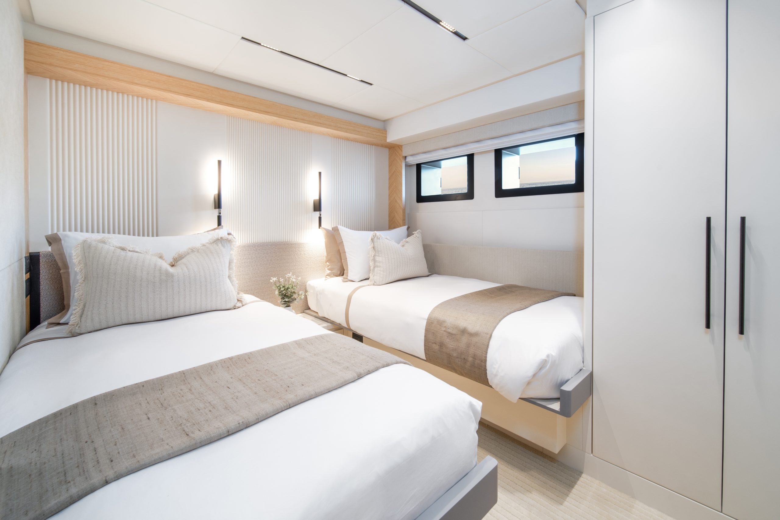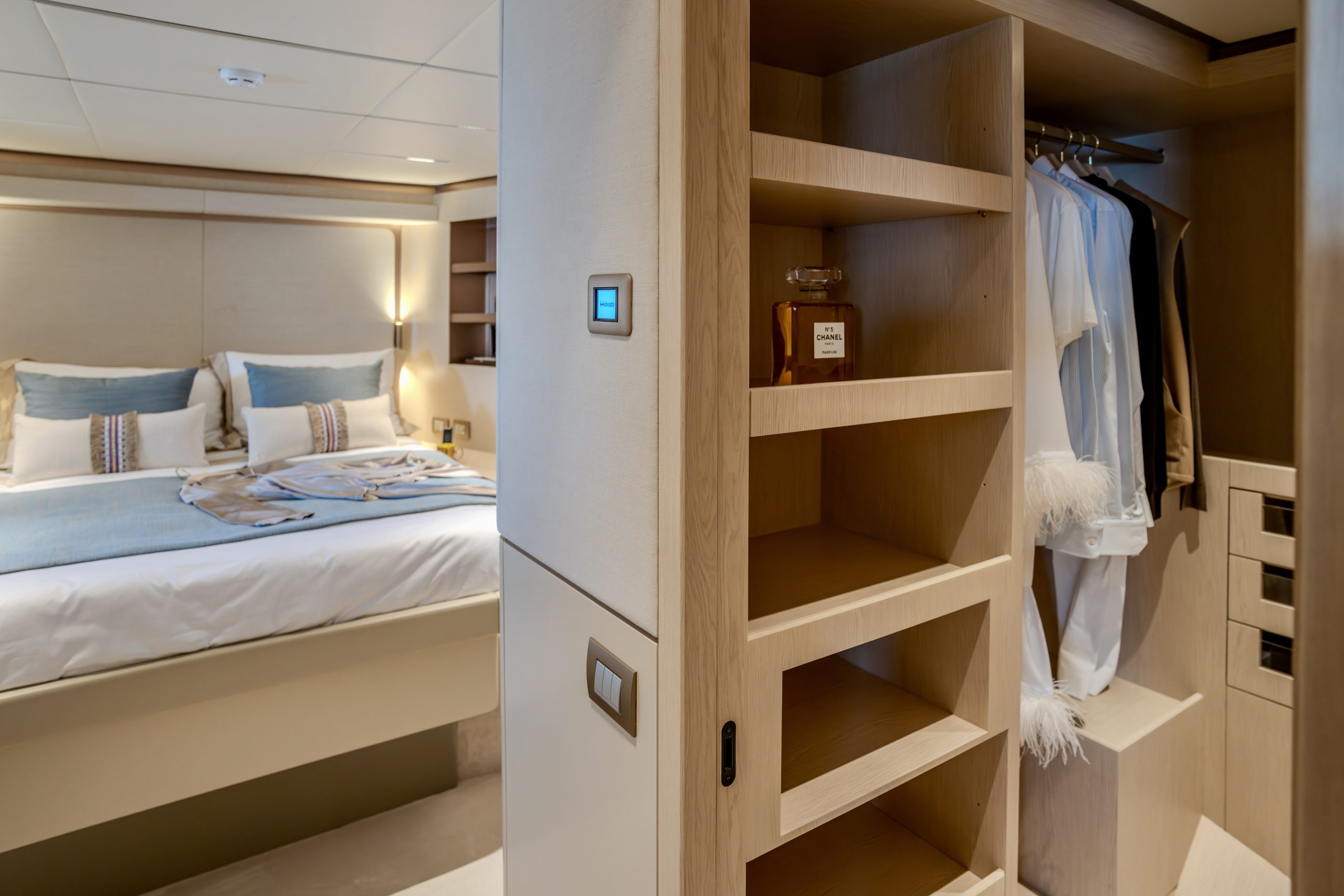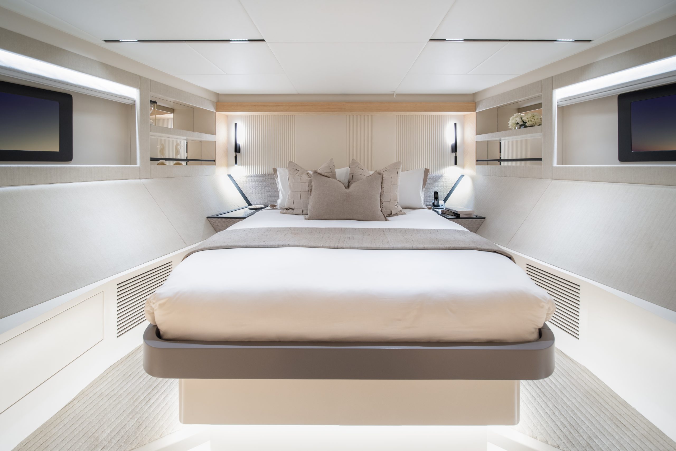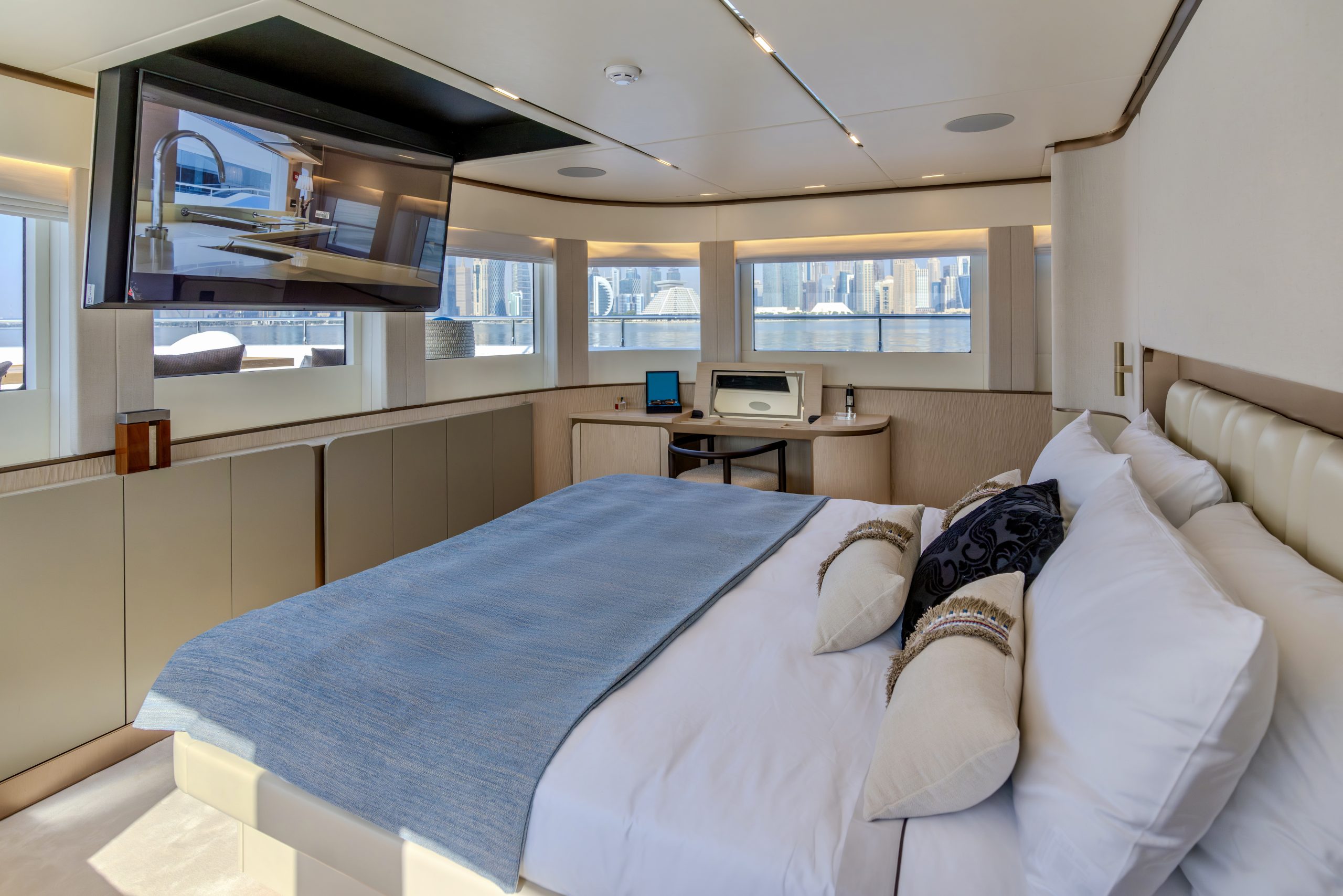 Không gian nghỉ ngơi được thiết kế xa hoa cho 10 thượng khách trong 5 phòng ngủ tiện nghi, mang lại sự riêng tư tuyệt đối cùng không gian rộng rãi đến kinh ngạc – điều hiếm thấy ở các du thuyền cùng phân khúc.