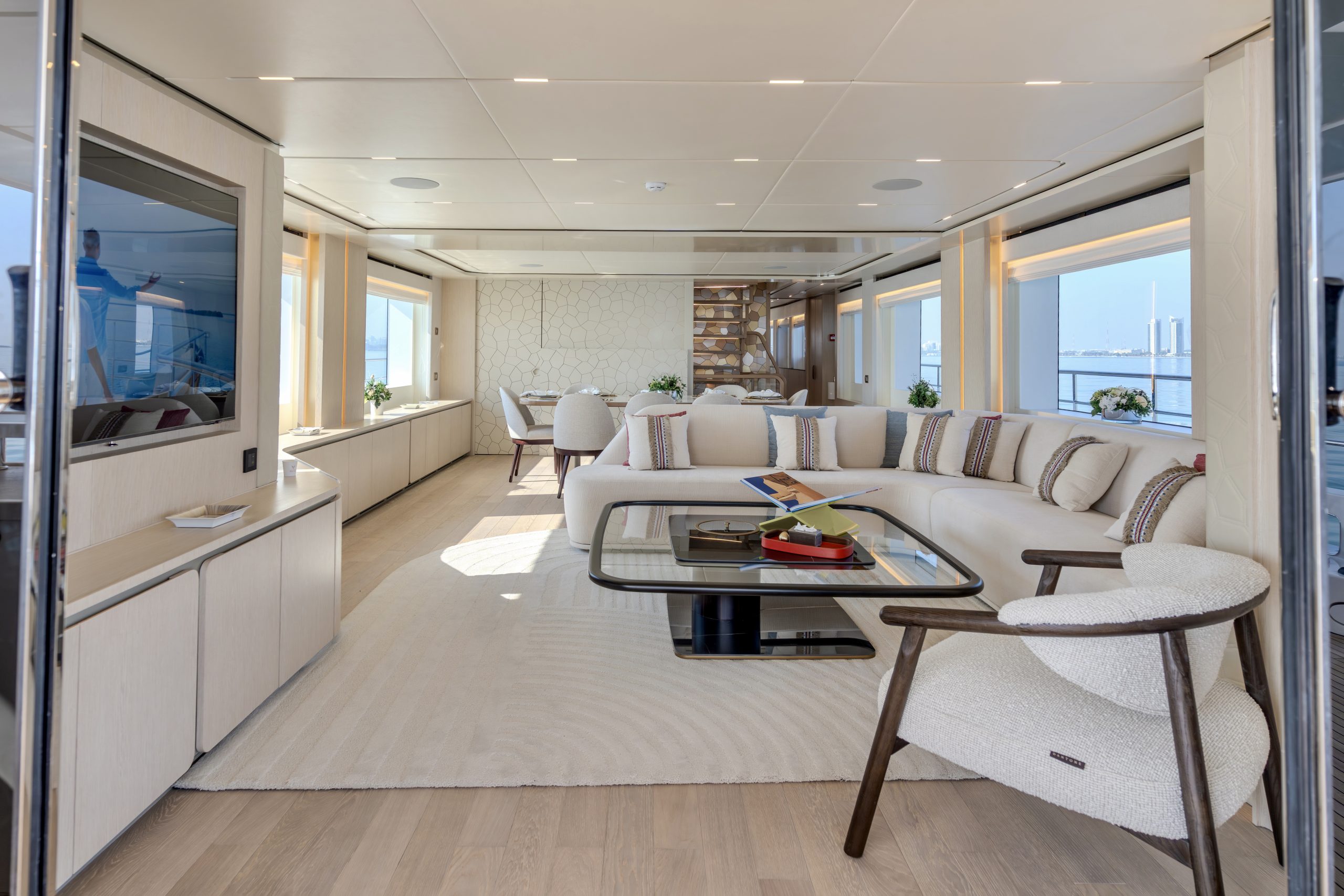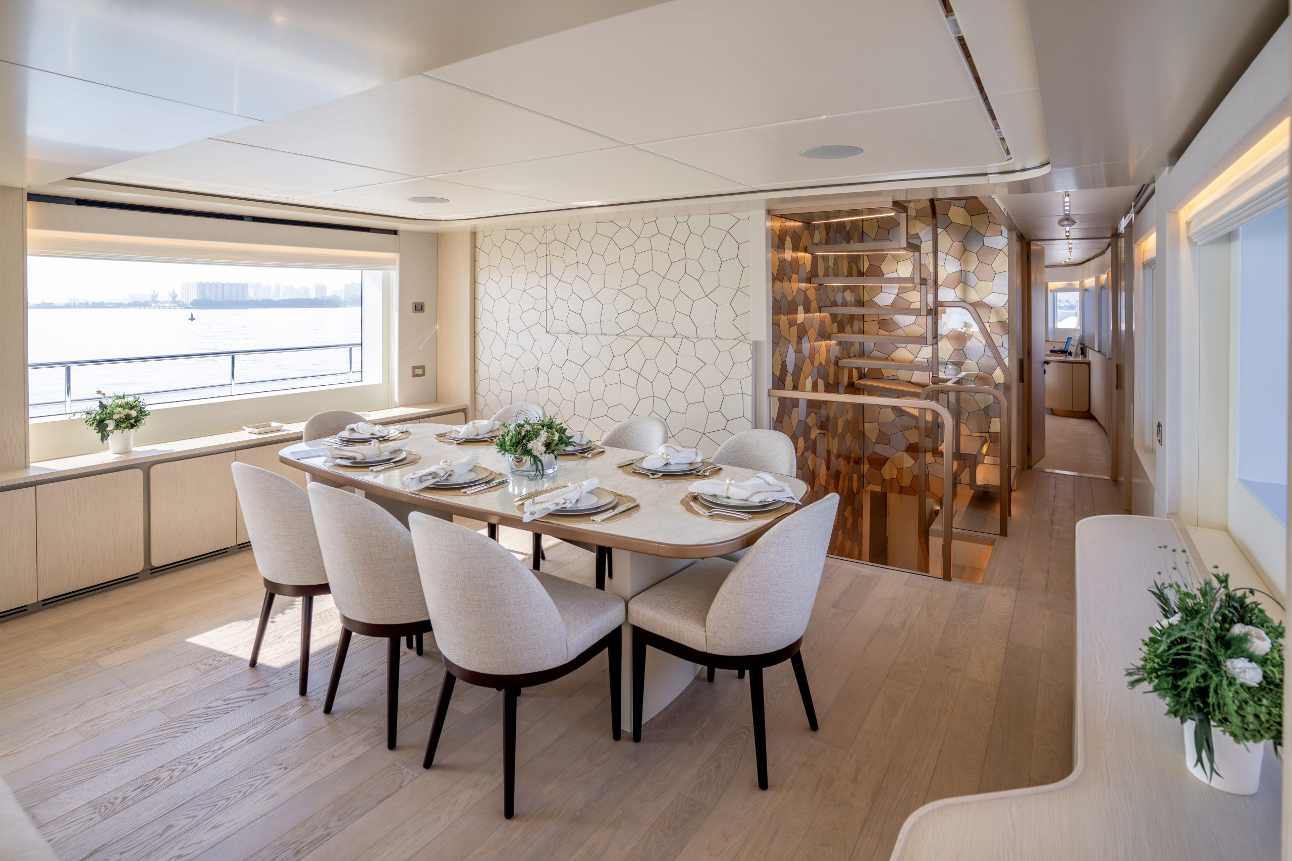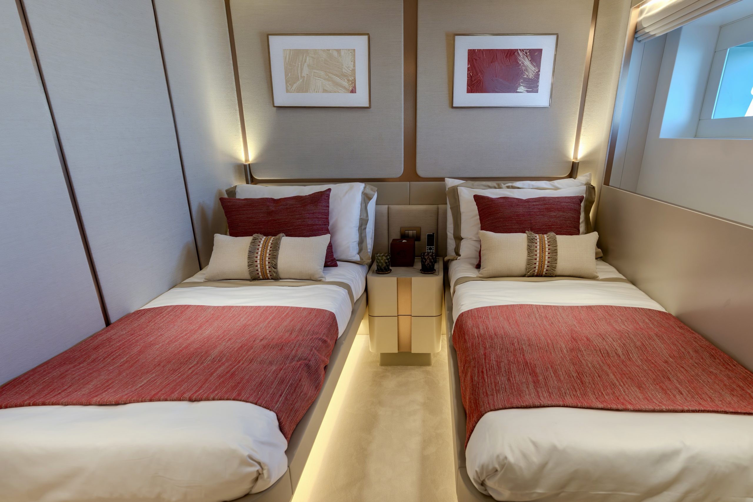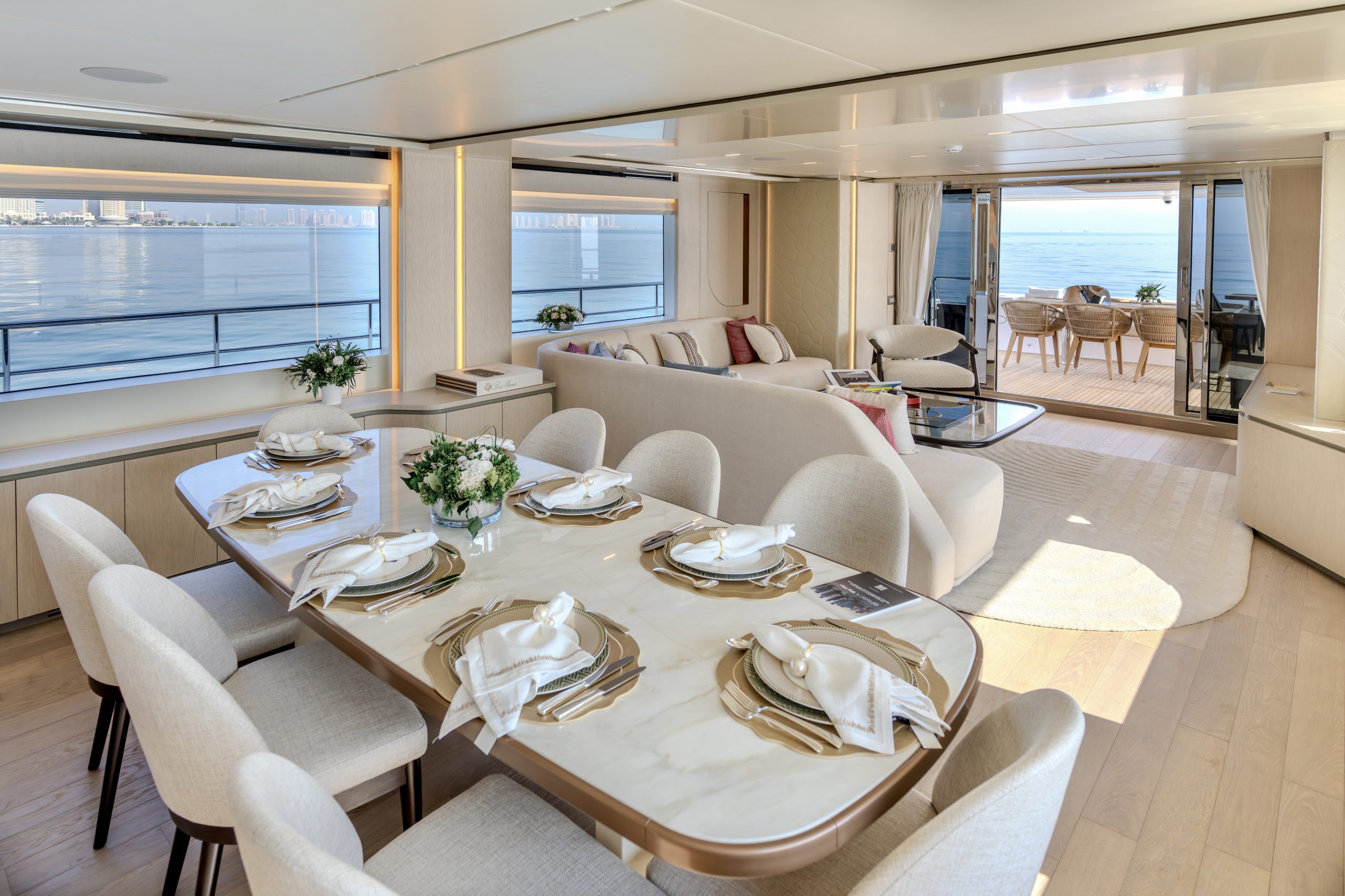 Không gian nghỉ ngơi được thiết kế xa hoa cho 10 thượng khách trong 5 phòng ngủ tiện nghi, mang lại sự riêng tư tuyệt đối cùng không gian rộng rãi đến kinh ngạc – điều hiếm thấy ở các du thuyền cùng phân khúc.