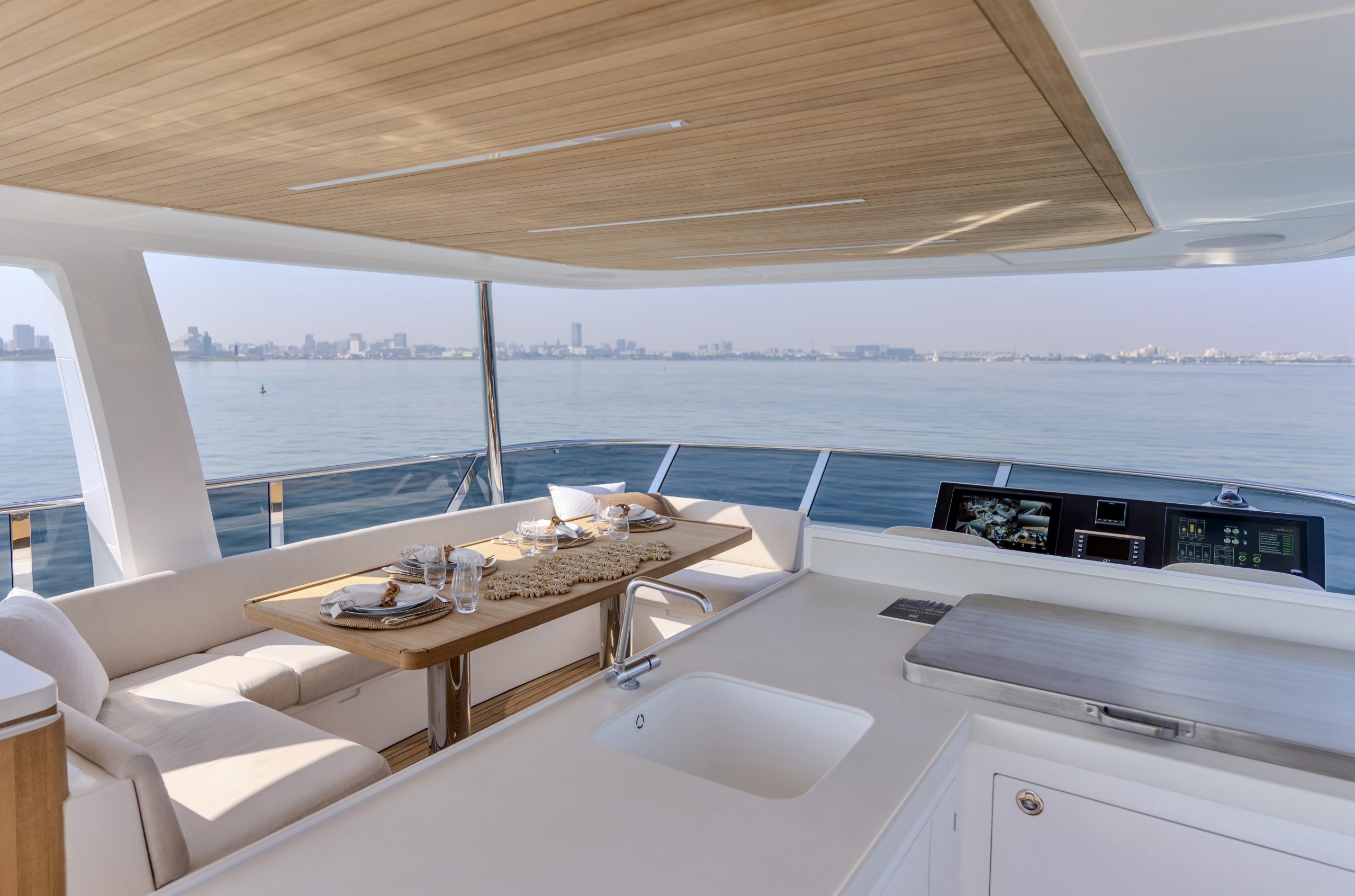 Đặc biệt, cấu trúc 3 tầng boong kiến tạo nên những không gian thư giãn ngoài trời lý tưởng. Đó là nơi bạn có thể thảnh thơi chiêm ngưỡng thiên nhiên hùng vĩ, ngắm nhìn biển khơi hay đơn giản là thả mình vào sự tĩnh lặng tuyệt đối giữa những vùng vịnh hoang sơ, tách biệt hoàn toàn với thế giới ồn ã thường ngày.