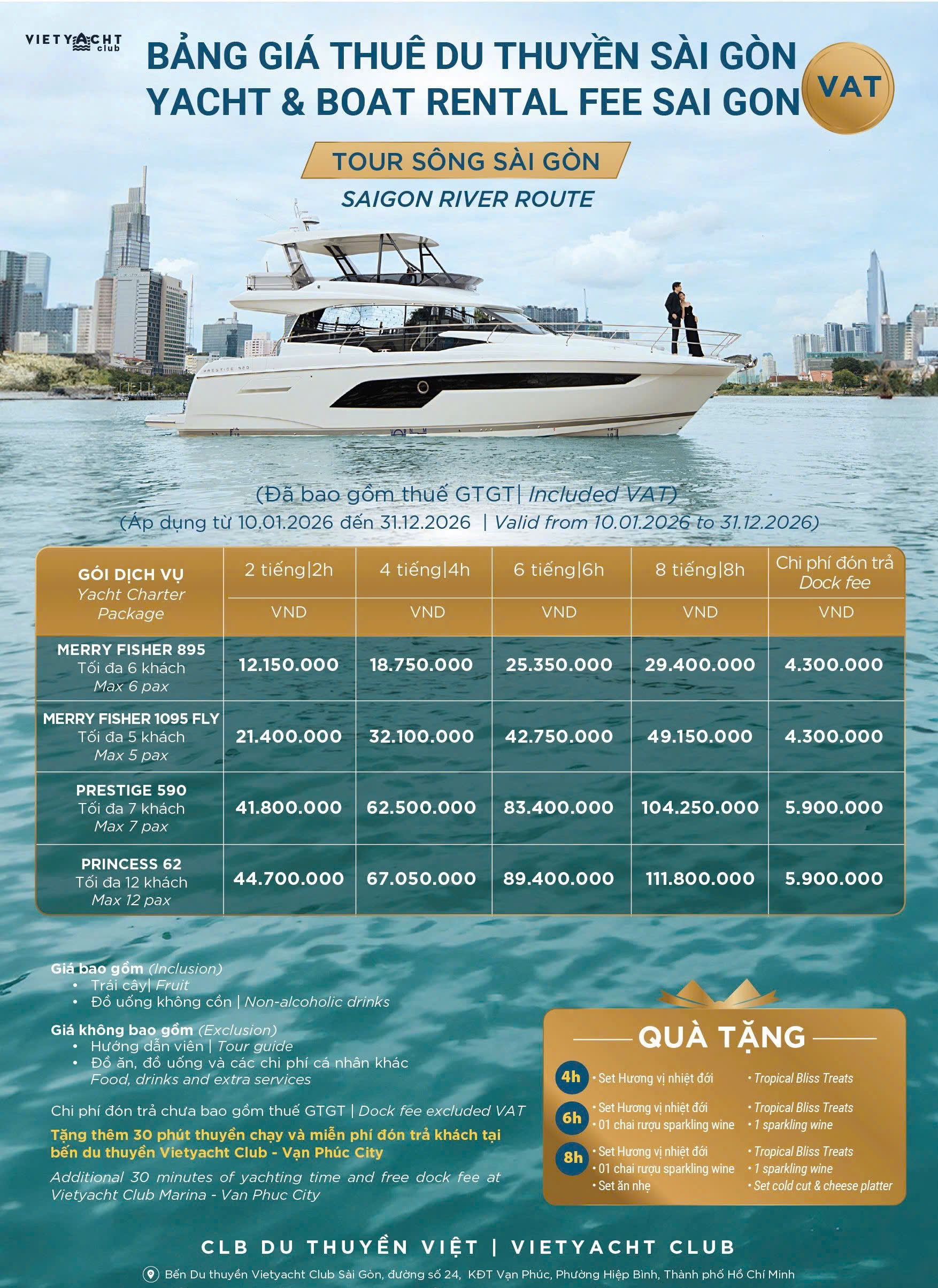 • Giá thuê du thuyền đã bao gồm thuế VAT,